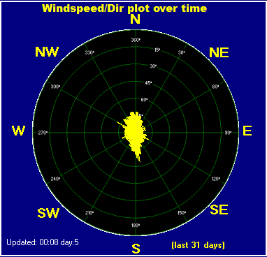 Maximum windspeed = 11.1 kmh from 047°( NE) on day 04 at time 21:16