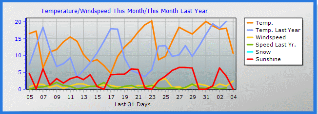 Coldest day on record -30.6 oC at: 18:00 on: 27 Jan 2004